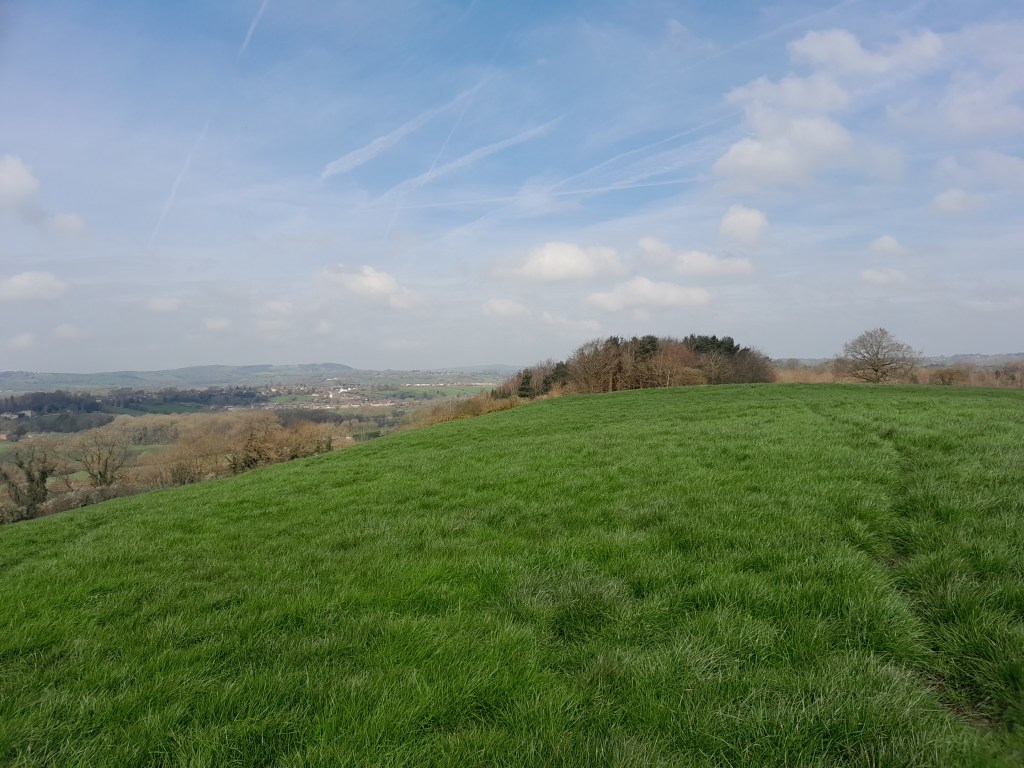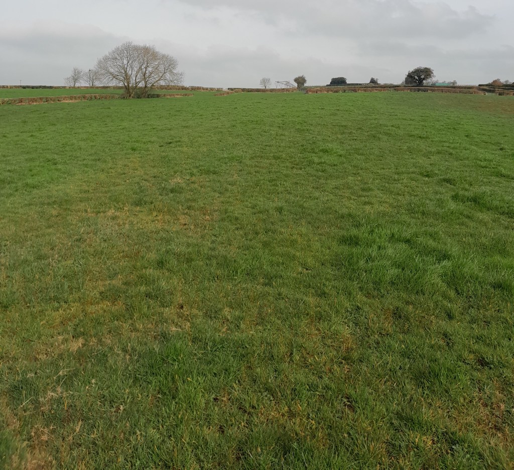 The footpath due west from Pentrich Church crosses the line of the old road at the top of a rise, and the raised platform for the road (known as an ‘agar’) can be just made out in the grass. Following this line north you come to another section of path which runs alongside a hedge – this is one of the few places Ryknild Street can actually be followed (see lower photo). On the other side of Riley Lane there is no trace of the road as it runs through ploughed fields east of Coneygrey Farm. However, just west of the road’s course, on Castle Hill, is what the OS map calls a ‘Roman Fortlet’.